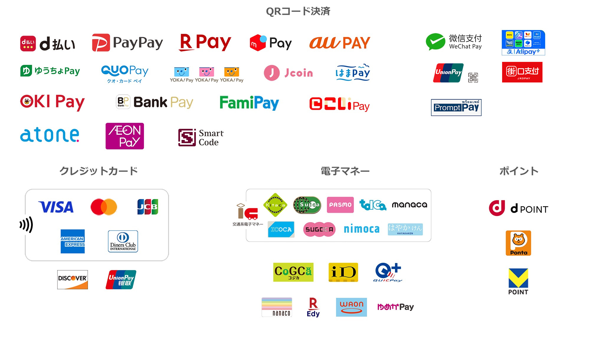 StarPayは、国内・海外ブランドを含めて業界トップレベルの30種類以上に対応する